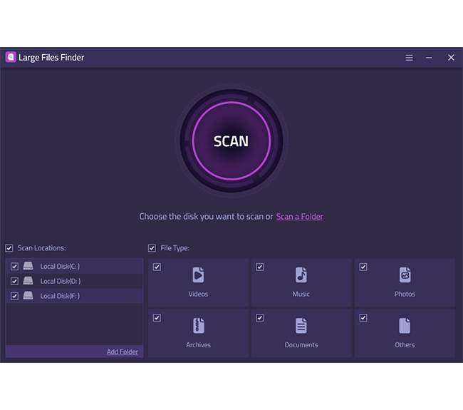 You get easy to use interface for Large Files Finder to acquire a list of all large files by selecting file types that can be quickly eliminated with a single click.